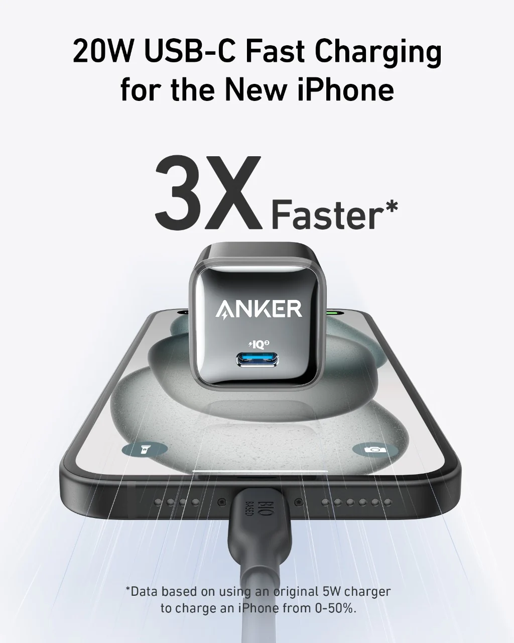 Small Size, Big Power: 45% smaller than an original 20W charger, but just as powerful.