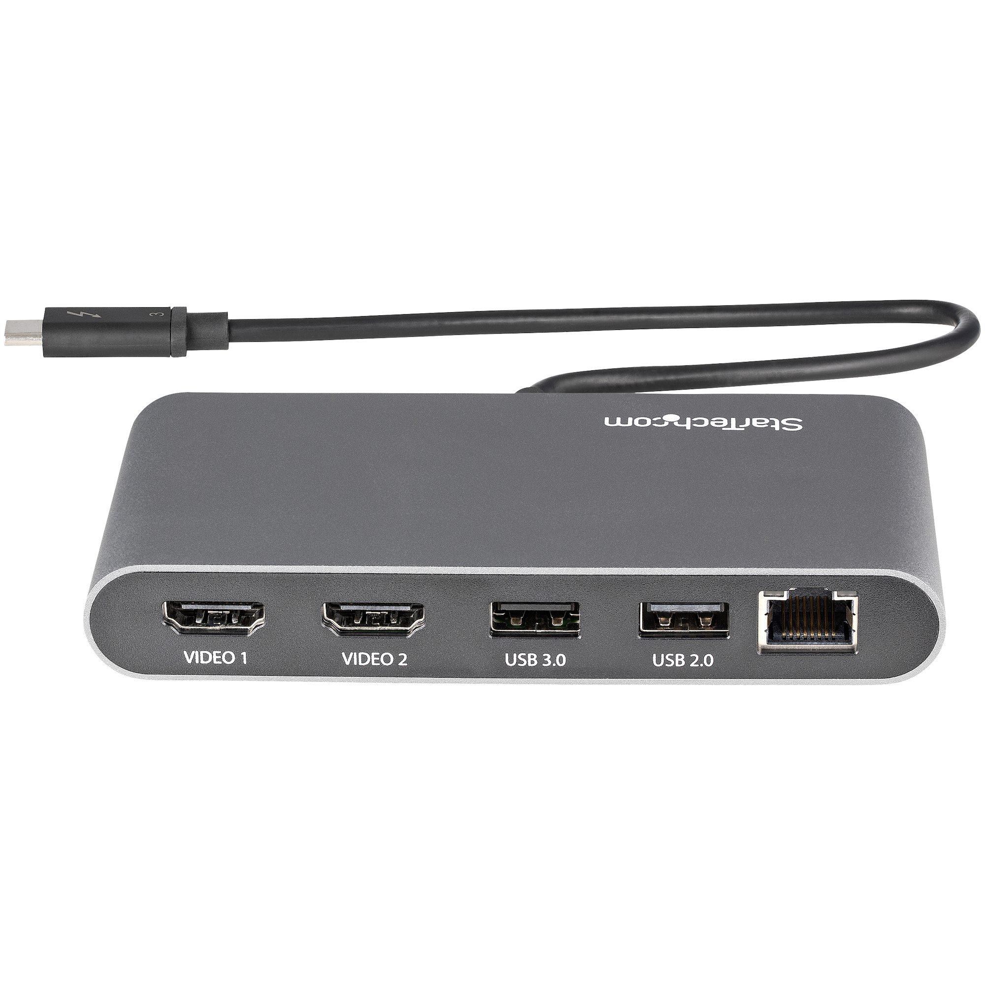 This certified Thunderbolt™ 3 docking station is a compact mini dock, delivering essential connections for productivity. The bus-powered dock connects dual 4K HDMI displays, Gigabit Ethernet, and two USB-A (USB 3.2 / 2.0) ports and for flexible set up, the attached Thunderbolt 3 cable has an extended length of (11 in./ 28 cm).